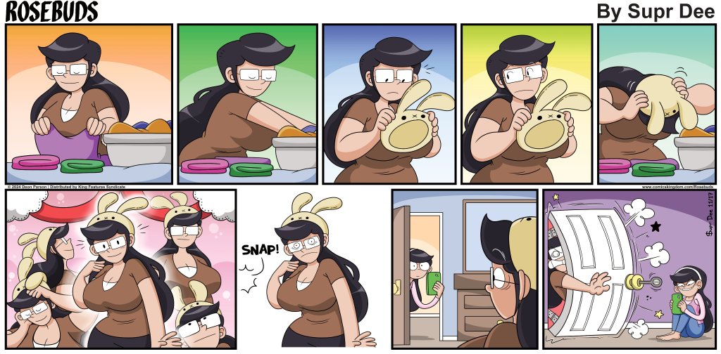 As of MAR14DAY 2024, Rosebuds is syndicated and distributed through King Features Syndicate, publishing online through the Comics Kingdom website and in 45 newspapers across the nation, including USA TODAY.